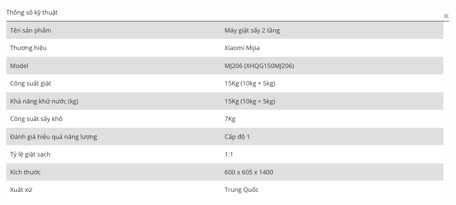 Máy Giặt Sấy Xiaomi Mijia 2 Tầng MJ206 Giặt 15Kg Sấy 7Kg – Ion bạc khử trùng, sấy biến tần BLDC